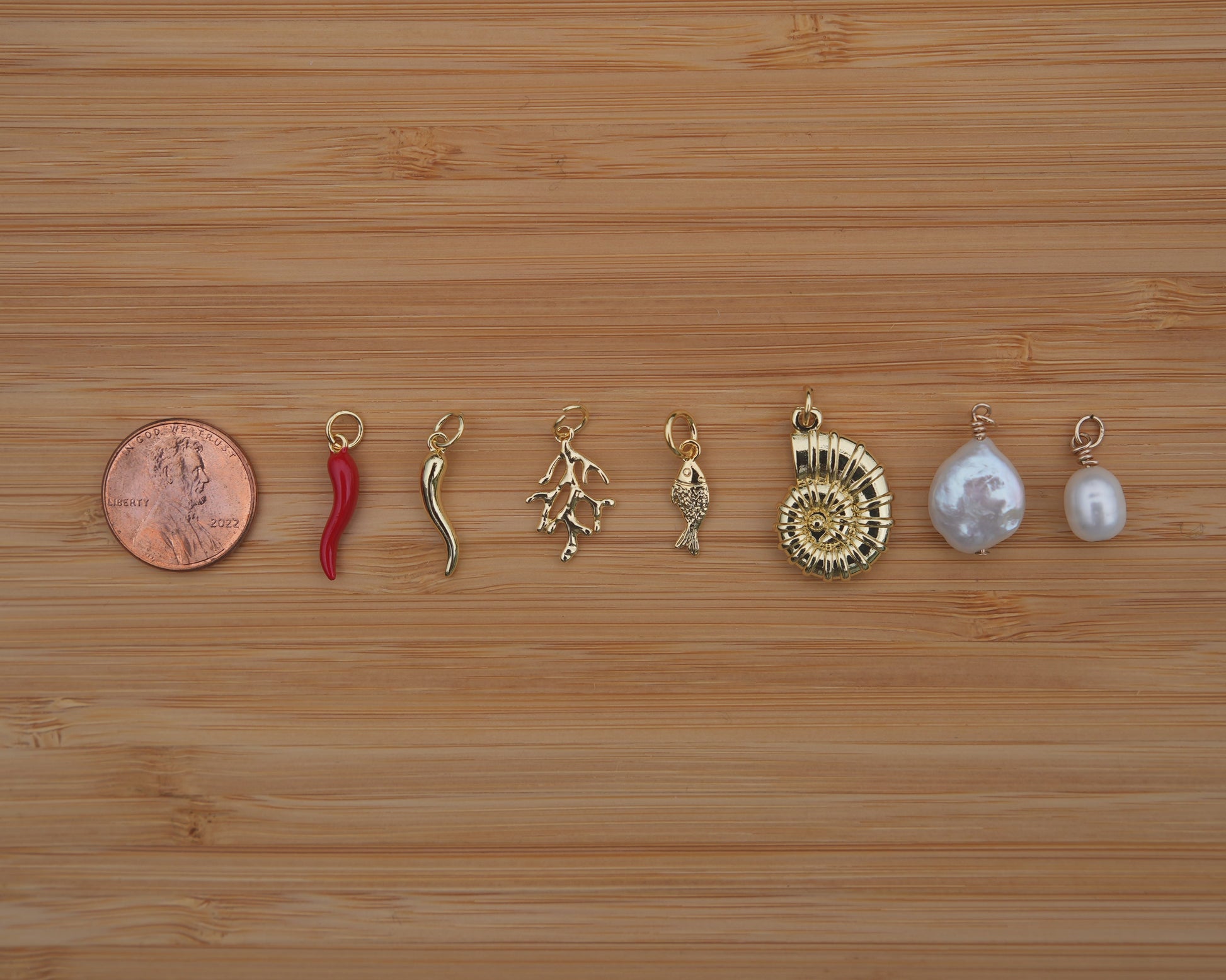 This adjustable 14k gold-filled satellite chain necklace can be worn from 16" to 18" and comes with gold-filled findings. Choose from a selection of charms to make it your own. Options include coral, shells, Italian horns, red enamel horns, fish, and freshwater pearls (round or natural).
